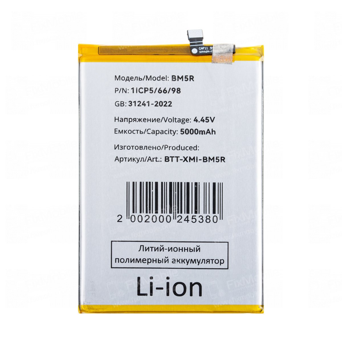 • Тип товара:Аккумулятор