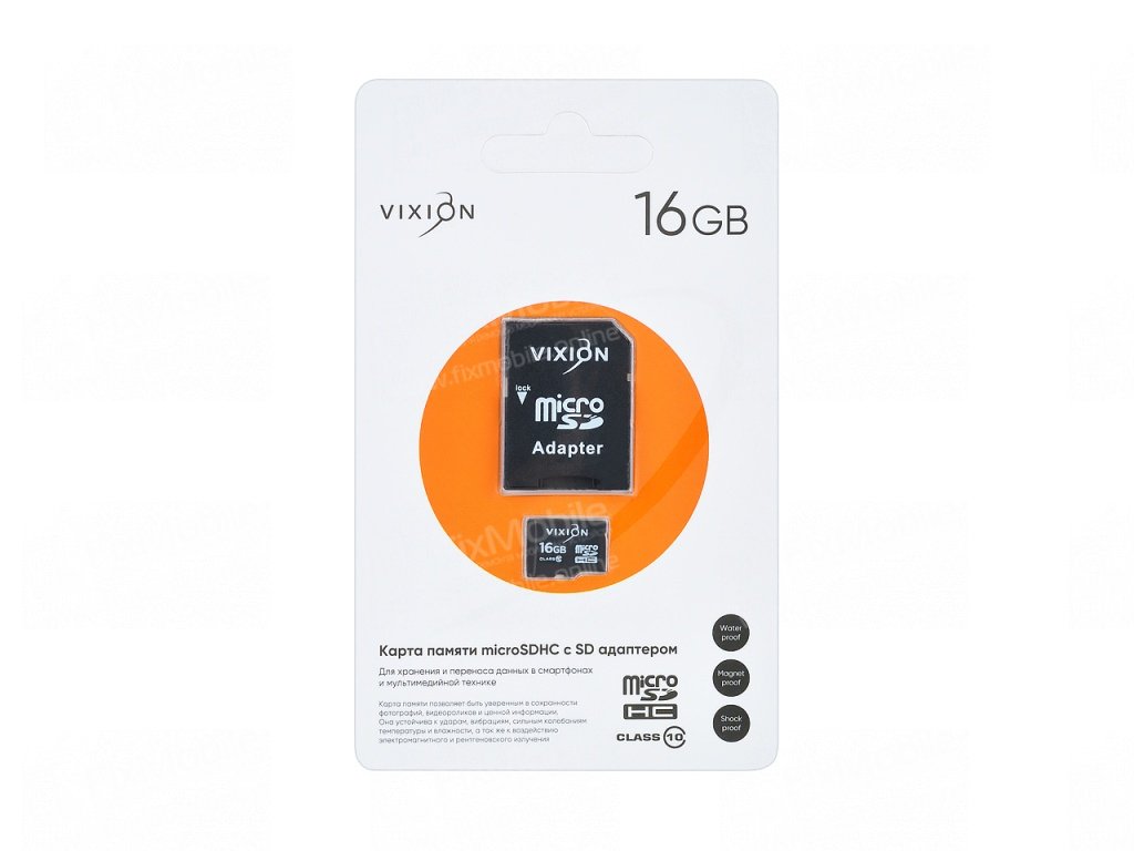 Карта памяти MicroSD 16GB VIXION Class 10 с SD адаптером